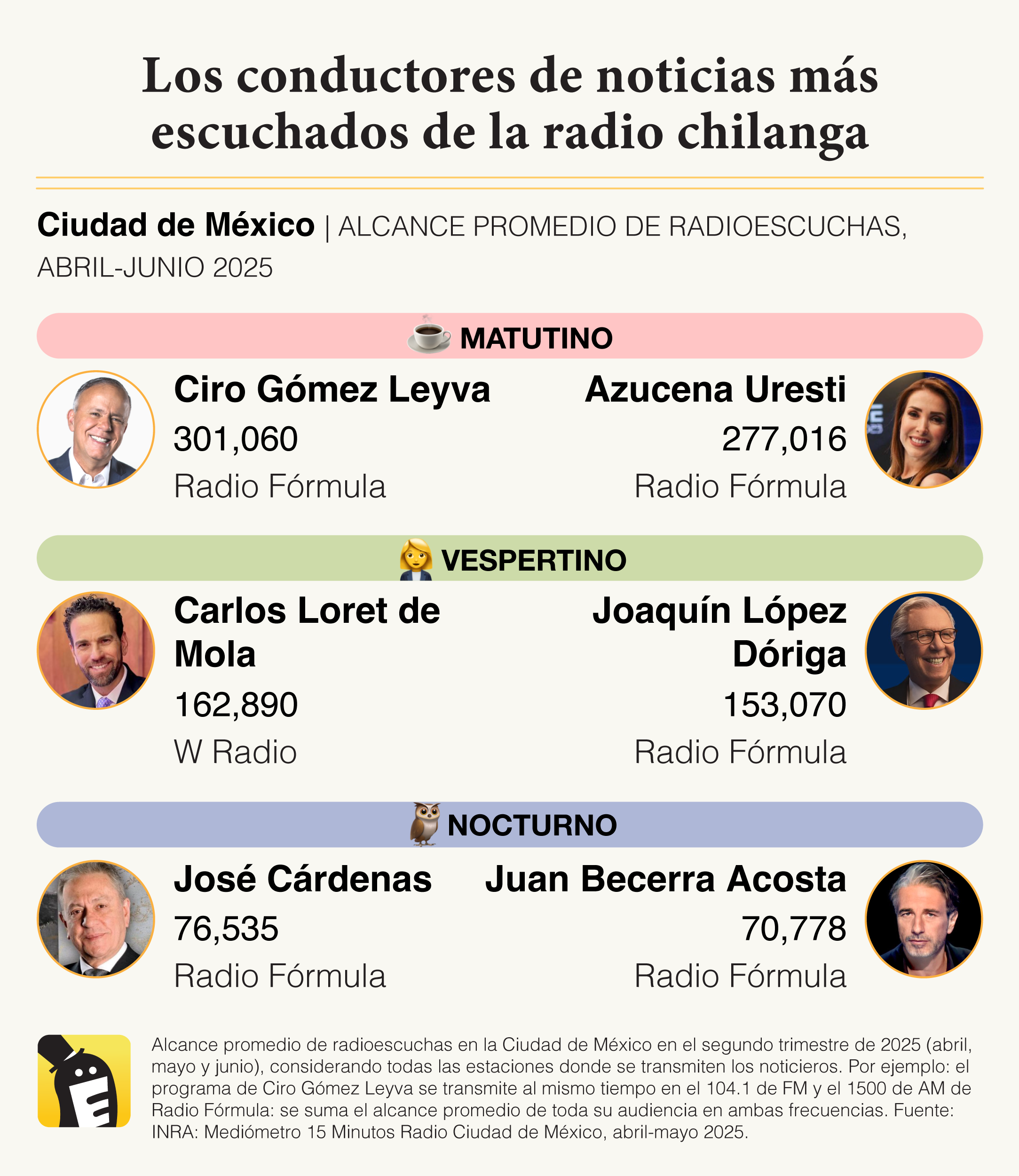 📉 Con excepción de Azucena y Villalvazo-Manero, todos los protagonistas del top 10 perdieron radioescuchas en el segundo trimestre de 2025.